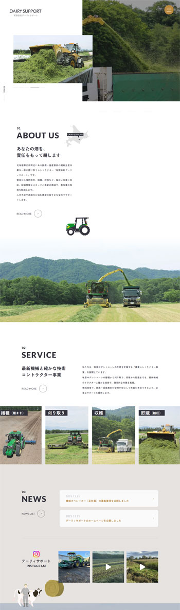 北海道帯広市周辺にある酪農・畜産農家の飼料生産作業を一手に請け負うコントラクター「有限会社デーリィサポート」のホームページを制作しました。